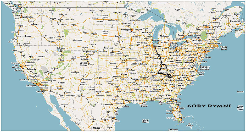 W trasę wyruszyliśmy w sobotę wieczorem. Przed nami zapowiadało się co najmniej 12 godzin jazdy, które Piotrek musiał pokonać sam, gdyż w tych czasach nie posiadałam jeszcze prawa jazdy, więc nie mogłam go czas od czasu zmienić. Aby dotrzeć do stanu Tennessee musieliśmy przejechać najpierw przez całą Indianę oraz Kentucky. Oba stany mijaliśmy nocą, a do granic parku zbliżyliśmy się rano około godziny 10.